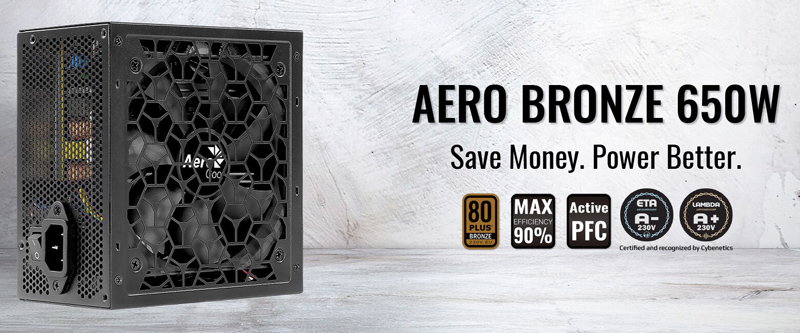 AEROCOOL τροφοδοτικο Aero 650W, Active PFC, 80 Plus Bronze
