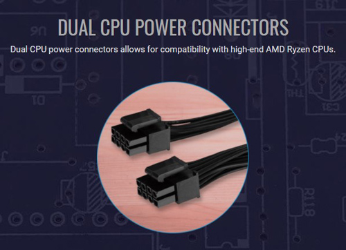 -dual CPU power connectors που επιτρεπουν την συμβατοτητα με high-end AMD Ryzen CPUs