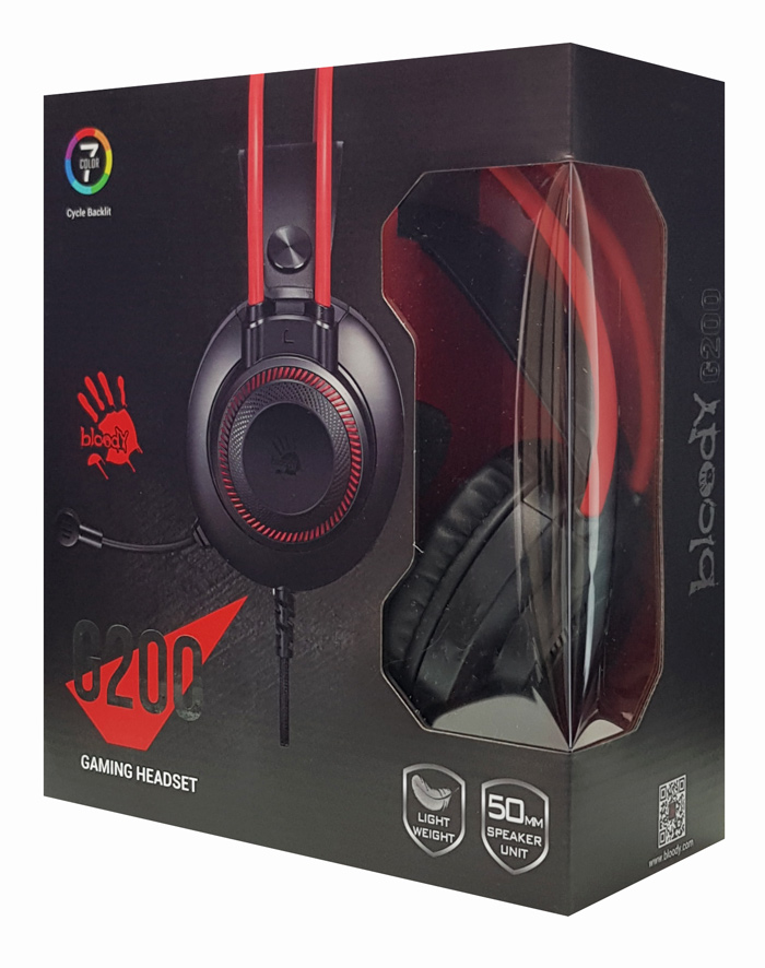 BLOODY Headset G200, 3.5mm, 50mm ακουστικα, HiFi stereo, μαυρα
