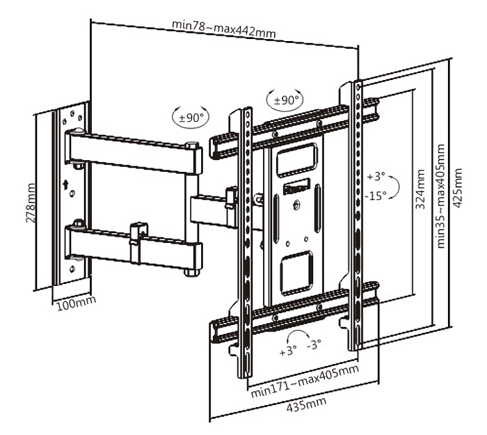 Swivel Range: +90°~-90°