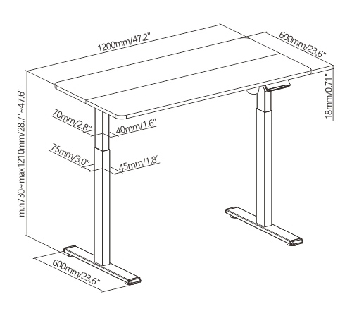 Διαστασεις: 1200 x 600 x 730~1210mm