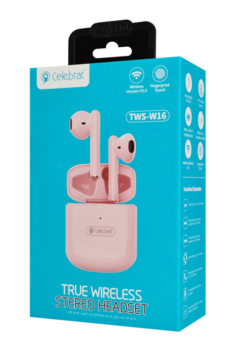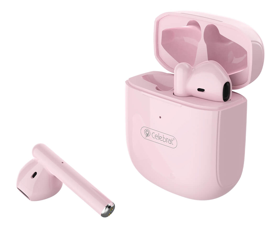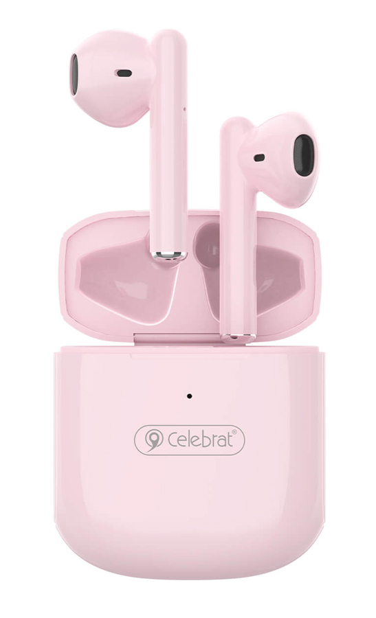 CELEBRAT earphones με θηκη φορτισης W16, True Wireless, ροζ