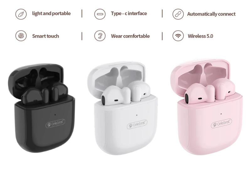 Τα true wireless earphones W16 της Celebrat προσφερουν κορυφαια ποιοτητα ηχου και αριστη εφαρμογη στο αυτι. Ειναι συμβατα με tablets, smartphones και καθε συσκευη που διαθετει bluetooth. Διαθετουν θηκη φορτισης, για την αποθηκευση, προστασια και επαναφορτιση των ακουστικων. Η θηκη επαναφορτιζεται απο καλωδιο φορτισης USB Type-C.