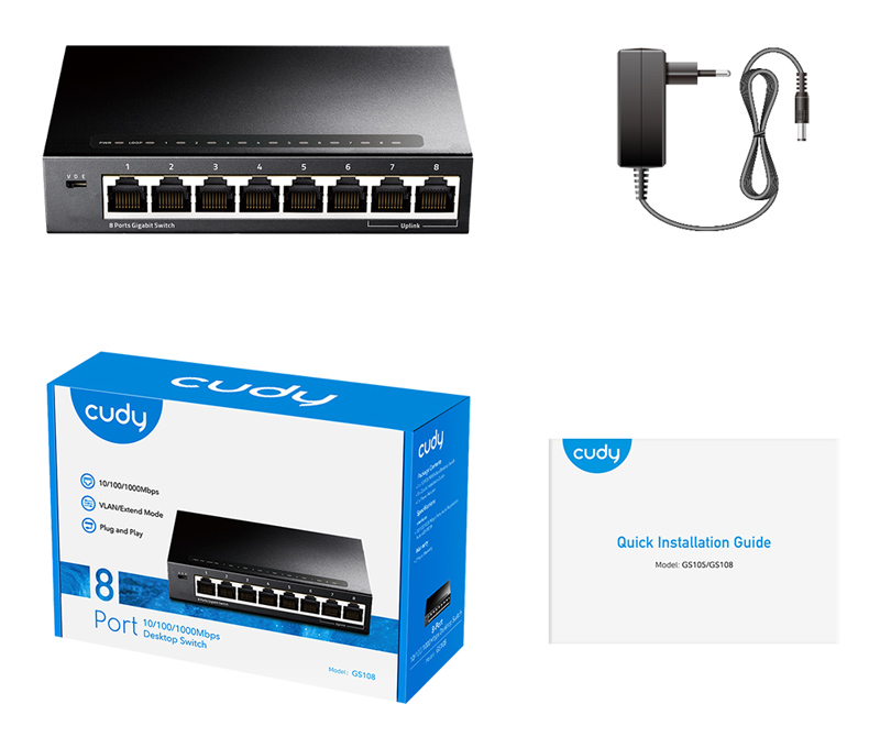 CUDY desktop switch GS108, 8-port Gigabit, 10/100/1000Mbps