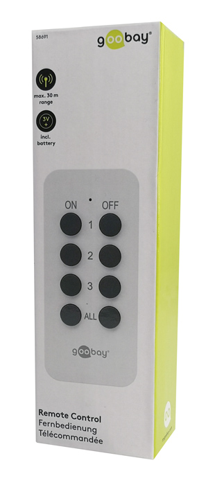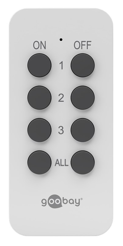Ασυρματο τηλεχειριστηριο της Goobay που σας επιτρεπει τον απομακρυσμενο ελεγχο ραδιοελεγχομενου ανταπτορα ρευματος, σε εμβελεια εως 30 μετρων.