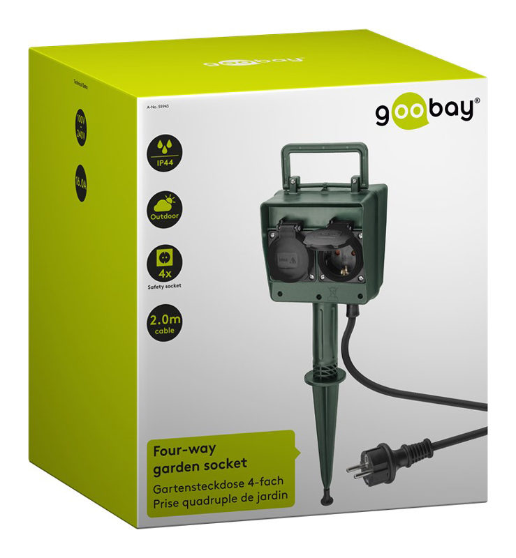 GOOBAY πολυπριζο ρευματος κηπου 55943, 4x schuko 16A, IP44 2m, πρασινος