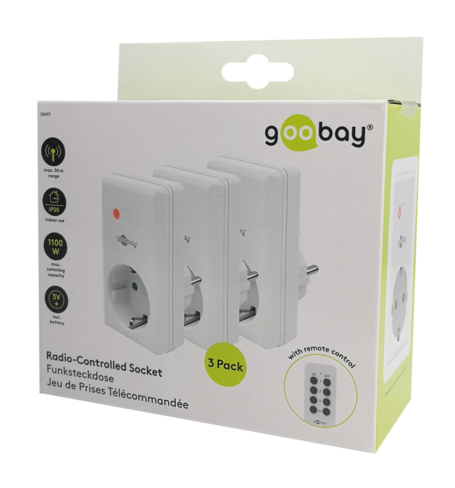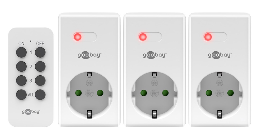 Σετ ραδιοελεγχομενος ανταπτορας ρευματος της Goobay, καταλληλος για πριζες σε εσωτερικους χωρους που η προσβαση τους ειναι δυσκολη.