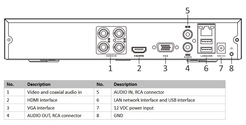HDCVI input: 4MP @25 fps, 4MP @30 fps, 1080p @25 fps, 1080p @30 fps, 720p @25 fps, 720p @30 fps