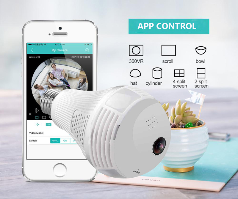 -Λαμπα LED και καμερα με πανοραμικη γωνια θεασης 360°