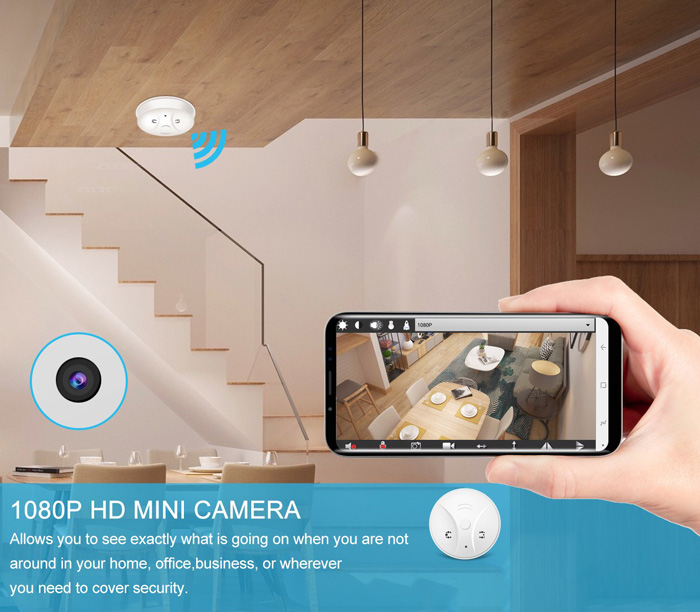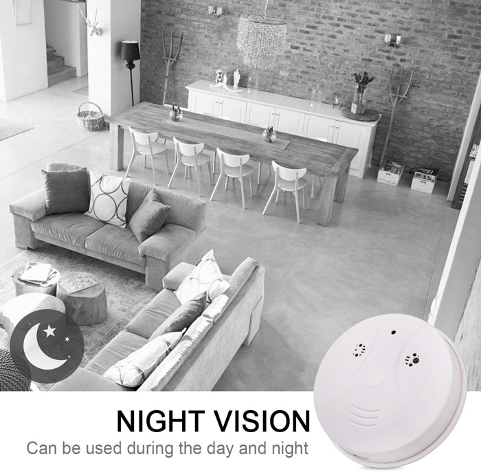 Ασυρματη κρυφη καμερα σε μορφη ανιχνευτη καπνου, ωστε να μην γινεται αντιληπτη, με δυνατοτητα ληψης βιντεο και φωτογραφιας υψηλης αναλυσης Full HD (1920x1080px) καθως και την καταγραφη τους σε καρτα microSD.