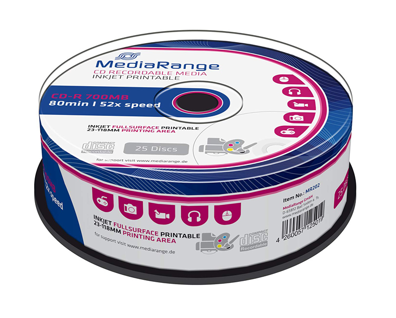 MEDIARANGE CD-R 52x 700MB, inkjet FF printable, cake box, 25τμχ