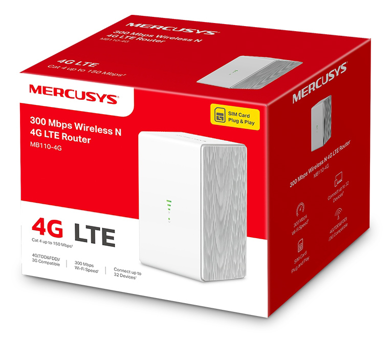 MERCUSYS Wireless N 4G LTE Router, 300 Mbps, Ver: 1.0