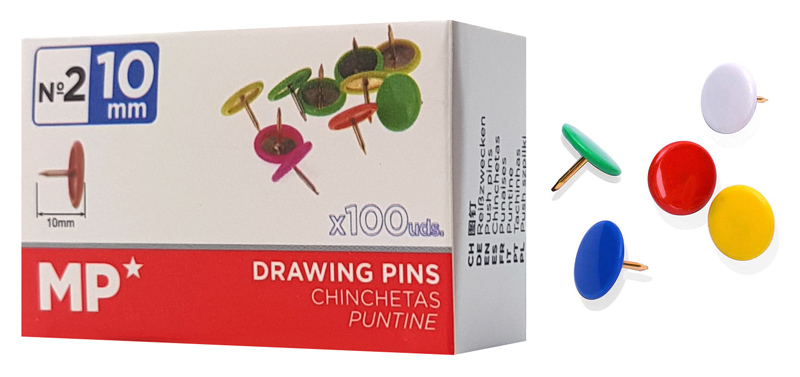 MP χρωματιστες πινεζες PA485-03, μεταλλικες, 10mm, 100τμχ