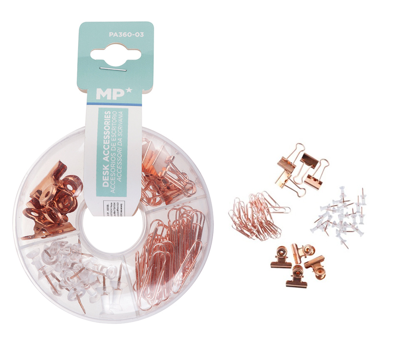 MP σετ γραφειου PA360-03 με συνδετηρες, κλιπ & πινεζες, ροζ χρυσο