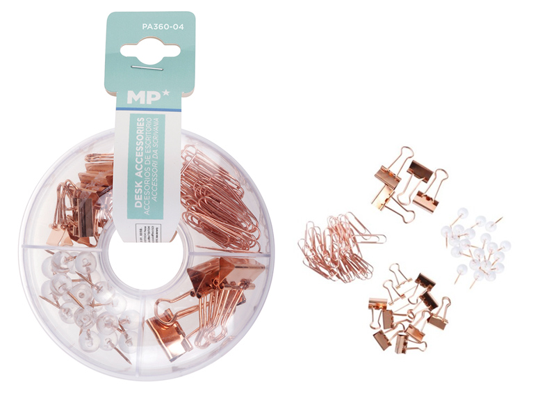 MP σετ γραφειου PA360-04 με συνδετηρες, κλιπ & πινεζες, ροζ χρυσο