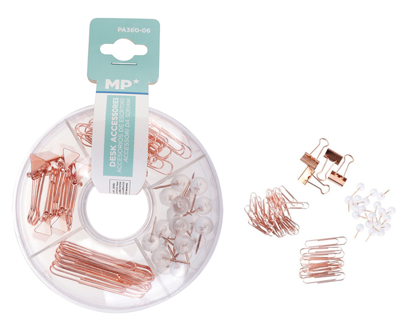 MP σετ γραφειου PA360-06 με συνδετηρες, κλιπ & πινεζες, ροζ χρυσο