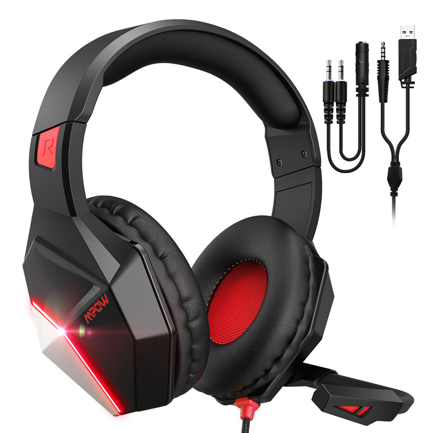 MPOW gaming headset BMBH414ARSD LED, multiplatform, 3.5mm, μαυρο-κοκκινο