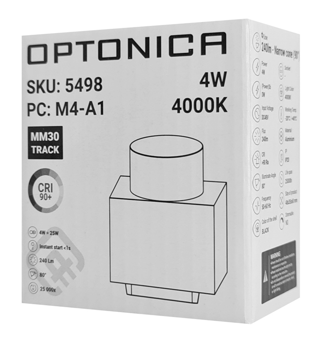 OPTONICA LED μαγνητικο φωτιστικο 5498, 4W, 4000K, μεταλλικο, μαυρο