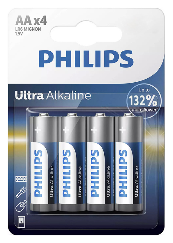PHILIPS Ultra αλκαλικες μπαταριες LR6E4B/10, AA LR6 1.5V, 4τμχ