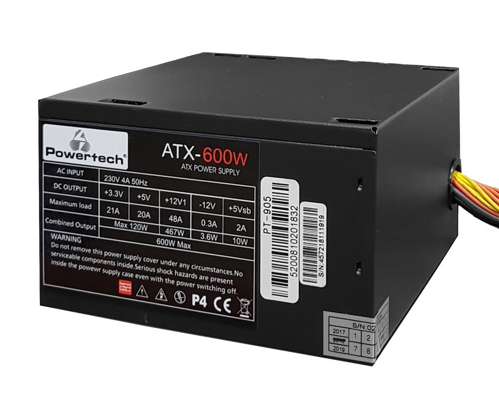 POWERTECH τροφοδοτικο για PC PT-905, 600W, 120mm Fan