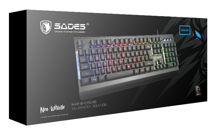 SADES gaming πληκτρολογιο Neo Whistle SA-KB105, RGB, αθορυβο, μαυρο