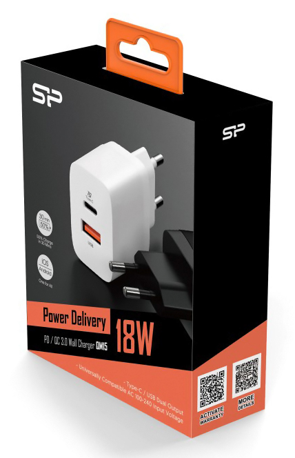 SILICON POWER φορτιστης τοιχου QM15, USB & USB Type-C, QC3.0 18W, λευκος