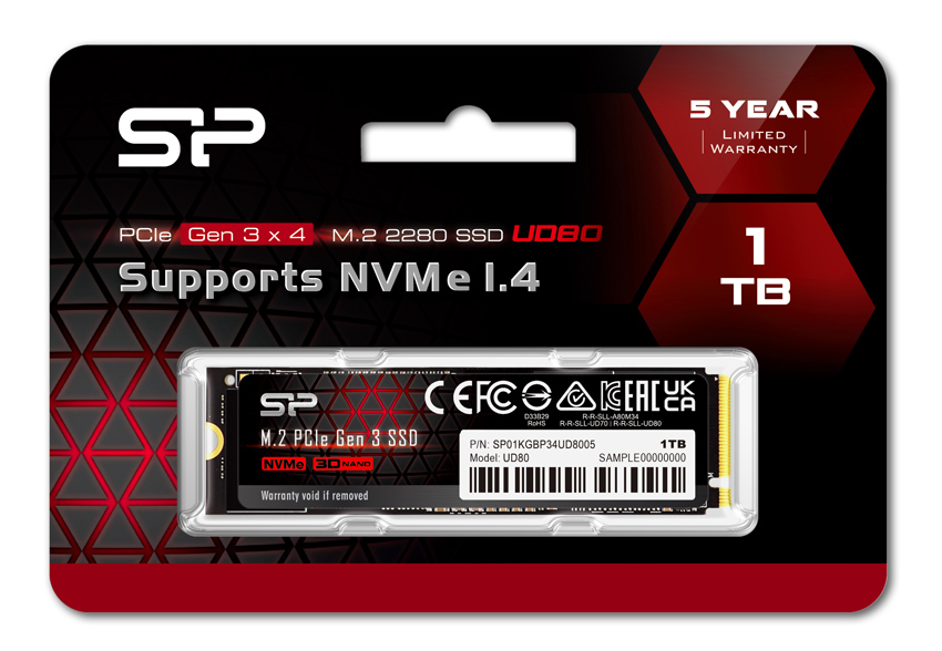 SILICON POWER SSD PCIe Gen3x4 M.2 2280 UD80, 1TB, 3.400-3.000MB/s