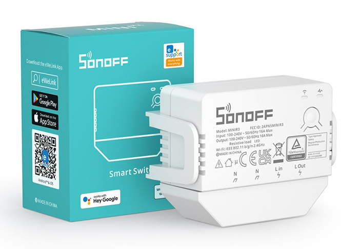 SONOFF smart διακοπτης MINIR3, 1-Gang, Wi-Fi, 16A, λευκος