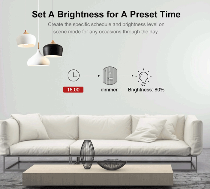 Βελτιωνει το συστημα φωτισμου του σπιτιου σας με διαφορετικα επιπεδα φωτεινοτητας. Με το smart dimmer μπορειτε να ενεργοποιησετε/απενεργοποιησετε τις λαμπες μεσω τηλεχειριστηριου RM433, της εφαρμογης eWeLink, της Alexa η του Google Home.