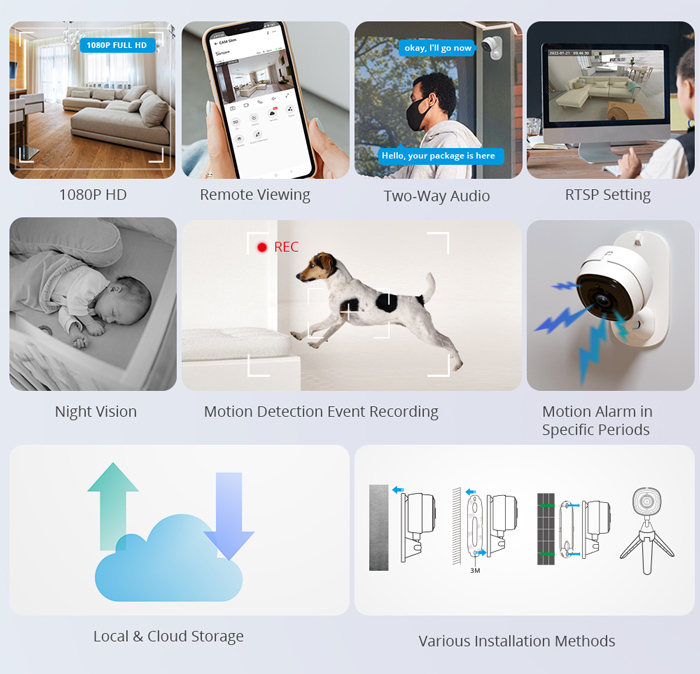 Τα βιντεο που καταγραφονται αποθηκευονται σε micro SD (δεν συμπεριλαμβανεται) η απευθειας σε λογαριασμο στο cloud.