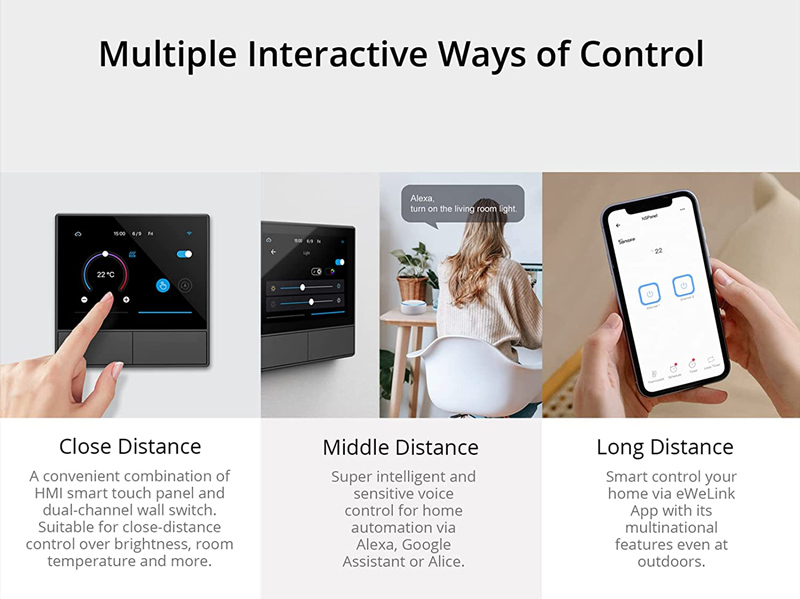 Συνδεεται μεσω Wi-Fi και της εφαρμογης eWeLink με το smartphone σας επιτρεποντας σας να ελεγχετε απομακρυσμενα τις συσκευες σας και υποστηριζει φωνητικο ελεγχο μεσω Amazon Alexa η Google Assistant.