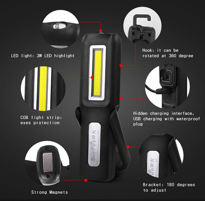 SUPFIRE φακος εργασιας G6 με εμπροσθιο & πλαϊνο LED, CREE XPE LED & COB