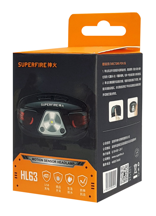 SUPFIRE φακος κεφαλης HL63 με αισθητηρα φωτος, 5W, 500Lm, 135m, 1200mAh