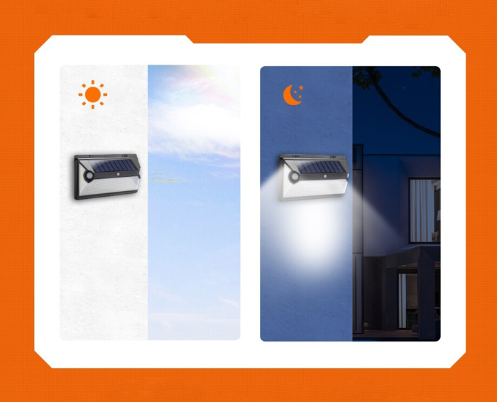 LED ηλιακος προβολεας, με ισχυ 72W και αισθητηρα κινησης PIR με εμβελεια ανιχνευσης εως 5 μετρα.