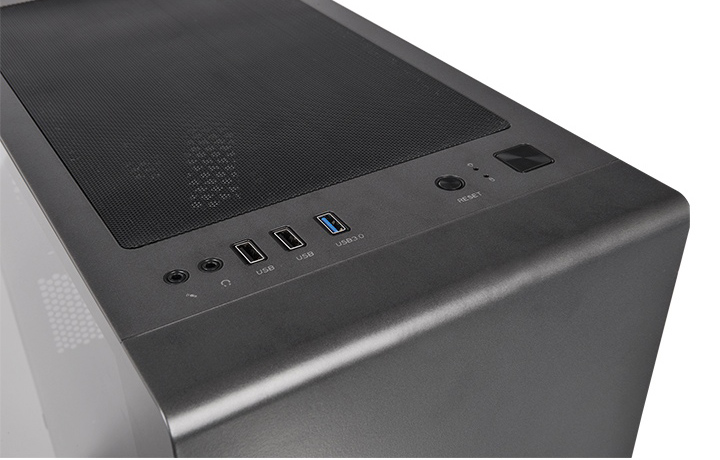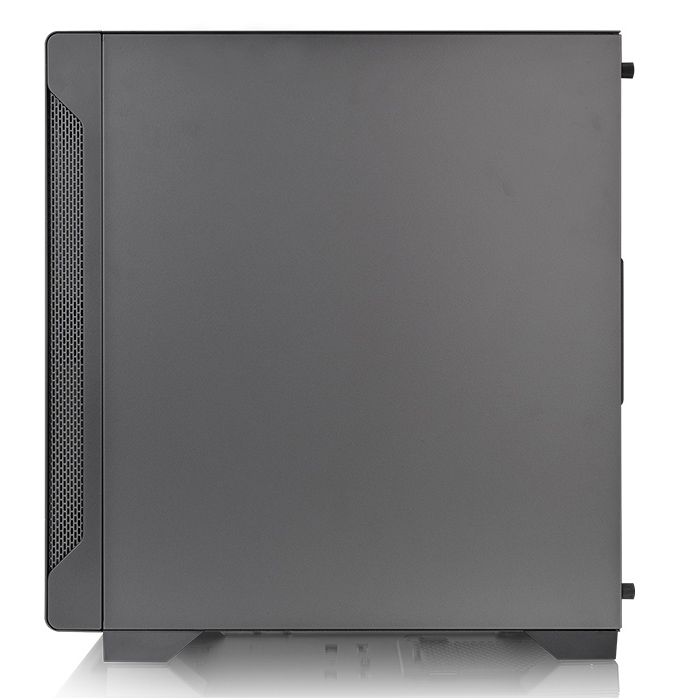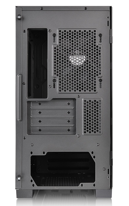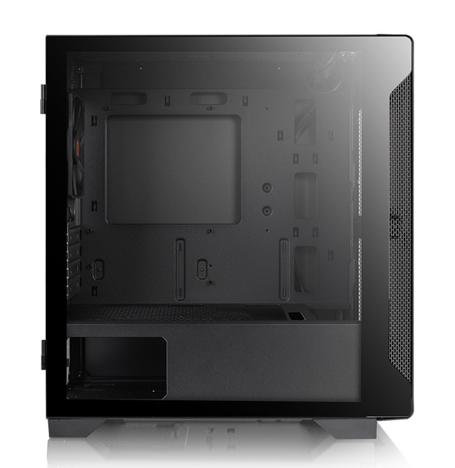 Micro tower case S100 TG της Thermaltake με μοντερνο σχεδιασμο και πληρες διαφανες πλαϊνο πλαισιο απο tempered glass που αναδεικνυει το εσωτερικο του πυργου.