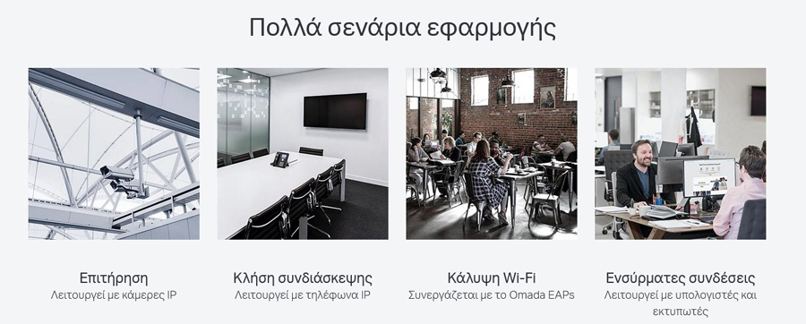 -Εξοπλισμενο με τεσσερις θυρες PoE, δεδομενα και ισχυς μπορουν να μεταφερθουν σε ενα μονο καλωδιο