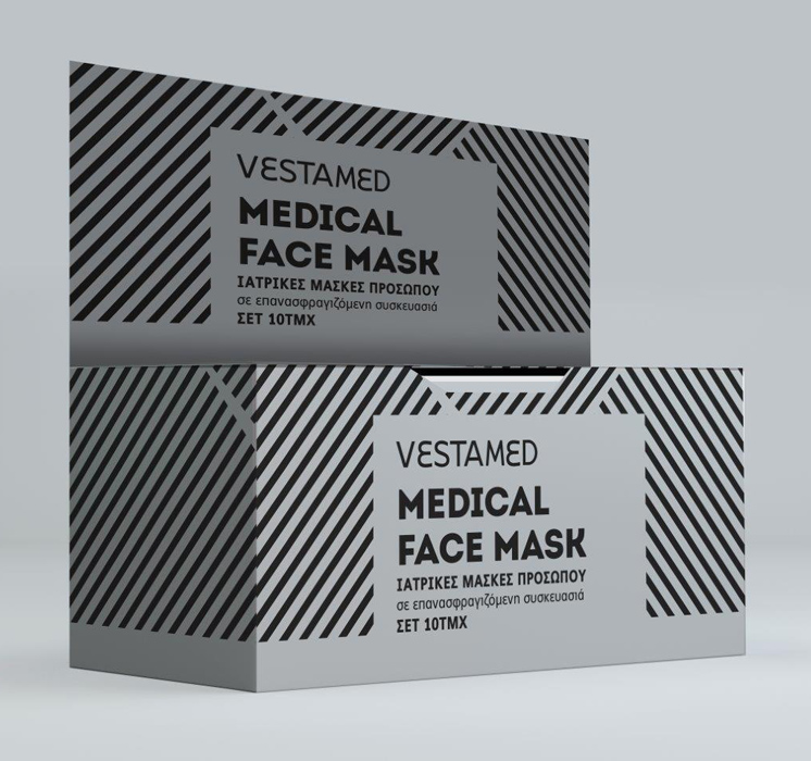 VESTAMED χειρουργικη μασκα 3 στρωματων VMM40, BFE >98%, 5x 10τμχ γαλαζια